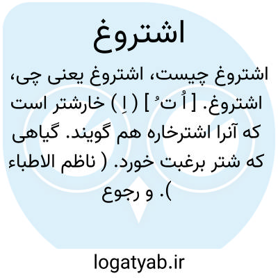 اشتروغ. [ اُ ت ُ ] ( اِ ) خارشتر است که آنرا اشترخاره هم گویند. گیاهی که شتر برغبت خورد. ( ناظم الاطباء ). و رجوع به شعوری ج 1 ص 147 شود.