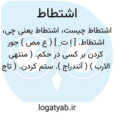 اشتطاط. [ اِ ت ِ ] ( ع مص ) جور کردن بر کسی در حکم. ( منتهی الارب ) ( آنندراج ). ستم کردن. ( تاج المصادر بیهقی ). از حد درگذشتن. ( زوزنی ). || دور رفتن ستور به چرا. || دور شدن. ( منتهی الارب ) ( آنندراج ).