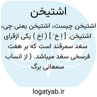 اشتیخن. [ اِ خ َ ] ( اِخ ) یکی ازقرای سغد سمرقند است که بر هفت فرسخی سغد میباشد. ( از انساب سمعانی برگ 38 الف ). روستائی است بسمرقند. ( منتهی الارب ). قصبه ای است واقع در هفت فرسخی شهر سمرقند. استخری گوید: در اطراف آن آبهای فراوان و باغها وبوستانهای پرحاصلی وجود دارد و جایگاه تولد گروهی از دانشمندان و عالمان بوده است. ( از قاموس الاعلام ).