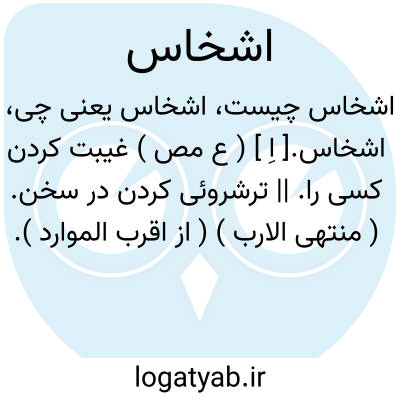لغت نامه دهخدا اشخاس.[ اِ ] ( ع مص ) غیبت کردن کسی را. || ترشروئی کردن در سخن. ( منتهی الارب ) ( از اقرب الموارد ).