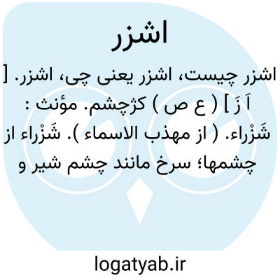 اشزر. [ اَ زَ ] ( ع ص ) کژچشم. مؤنث: شَزْراء. ( از مهذب الاسماء ). شَزْراء از چشمها؛ سرخ مانند چشم شیر و شخص خشمناک. ( از اقرب الموارد ). || لبن اشزر؛ شیر سرخ. ( از اقرب الموارد ).