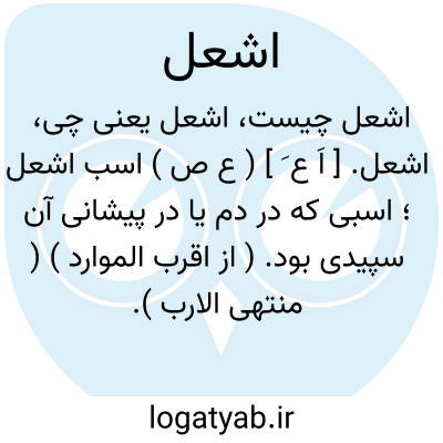 اشعل. [ اَ ع َ ] ( ع ص ) اسب اشعل؛ اسبی که در دم یا در پیشانی آن سپیدی بود. ( از اقرب الموارد ) ( منتهی الارب ). || مرد اشعل؛ که حلقه چشم او بسرخی زند. مؤنث: شَعْلاء. ج، شُعْل. ( از اقرب الموارد ).