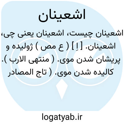 اشعینان. [ اِ ] ( ع مص ) ژولیده و پریشان شدن موی. ( منتهی الارب ). کالیده شدن موی. ( تاج المصادر بیهقی ).