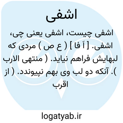 اشفی. [ اَ فا ] ( ع ص ) مردی که لبهایش فراهم نیاید. ( منتهی الارب ). آنکه دو لب وی بهم نپیوندد. ( از اقرب الموارد ).