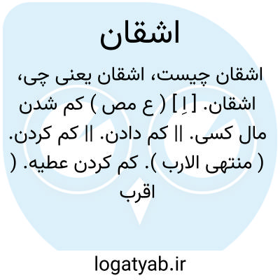 اشقان. [ اِ ] ( ع مص ) کم شدن مال کسی. || کم دادن. || کم کردن. ( منتهی الارب ). کم کردن عطیه. ( اقرب الموارد ).