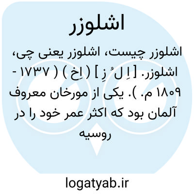 اشلوزر. [ اِ ل ُ زِ ] ( اِخ ) ( 1737 - 1809 م. ). یکی از مورخان معروف آلمان بود که اکثر عمر خود را در روسیه گذرانید و السنه اسلاوی را کاملاً آموخت و آثاری مربوط به روسیه و تاریخی که مکمل تاریخ روسیه بود، تألیف کرد. وی نخستین کسی است که تاریخ تهذیب شده ای از خرافات روسیه را نوشت و حقایق بسیاری را که تا روزگار او پنهان بود آشکار ساخت.