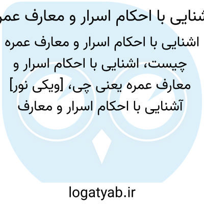 [ویکی نور] آشنایی با احکام اسرار و معارف عمره. آشنایی با احکام، اسرار و معارف عمره، اثر روزبه برکت رضایی (متولد 1352ش) است که نویسنده در آن، یک دوره آداب و احکام و مناسک عمره را با بیانی روان و شیوا توضیح داده است.