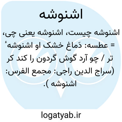 فرهنگ عمید = عطسه: دَماغ خشک او اشنوشهٴ تر / چو آرد گوش گردون را کند کر (سراج الدین راجی: مجمع الفرس: اشنوشه ).