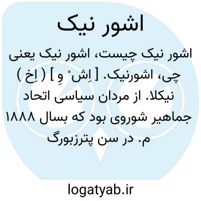 اشورنیک. [ اِش ْ وِ ] ( اِخ ) نیکلا. از مردان سیاسی اتحاد جماهیر شوروی بود که بسال 1888 م. در سن پترزبورگ متولد شد و مدتی صدر هیأت رئیسه شورای عالی آن کشور بود و بسال 1946 درگذشت.