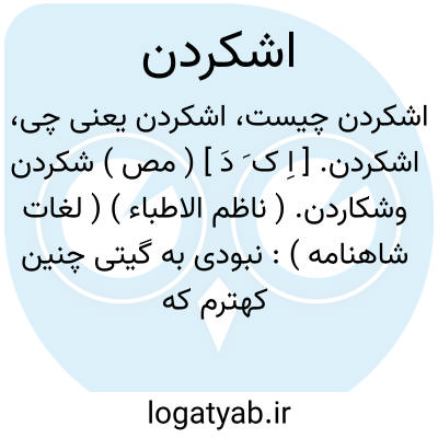 اشکردن. [ اِ ک َ دَ ] ( مص ) شکردن وشکاردن. ( ناظم الاطباء ) ( لغات شاهنامه ):