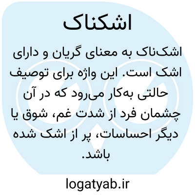 اشک‌ناک به‌ معنای گریان و دارای اشک است. این واژه برای توصیف حالتی به‌کار می‌رود که در آن چشمان فرد از شدت غم، شوق یا دیگر احساسات، پر از اشک شده باشد. کاربرد این کلمه بیشتر در متون ادبی و شعر فارسی دیده می‌شود و بار عاطفی عمیقی را به مخاطب انتقال می‌دهد.