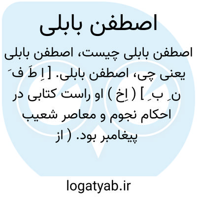 اصطفن بابلی. [ اِ طَ ف َ ن ِ ب ِ ] ( اِخ ) او راست کتابی در احکام نجوم و معاصر شعیب پیغامبر بود. ( از طبقات الامم قاضی صاعد اندلسی ). و قفطی آرد: یکی از حکمای کلده بشمار میرفت و در هنگام مبعث رسول اﷲ ( ص ) میزیست و تسییر کواکب و احکام نجوم را میدانست. او را کتاب جلیلی در احکام نجوم است. ( تاریخ الحکماء ص 68 ).