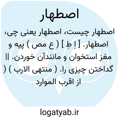 اصطهار. [ اِ طِ ] ( ع مص ) پیه و مغز استخوان و مانندآن خوردن. || گداختن چیزی را. ( منتهی الارب ) ( از اقرب الموارد ) ( قطر المحیط ) ( آنندراج ) ( ناظم الاطباء ). || اصطهار حرباء؛ درخشیدن پشت آن از گرمی خورشید. ( از اقرب الموارد ) ( قطر المحیط ).