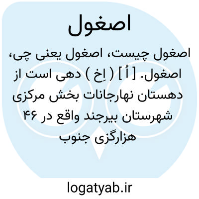 اصغول. [ اُ ] ( اِخ ) دهی است از دهستان نهارجانات بخش مرکزی شهرستان بیرجند واقع در 46 هزارگزی جنوب خاوری بیرجند. محلی است کوهستانی، معتدل و 512 تن سکنه دارد که فارسی زبان و شیعی مذهبند. آب آن از قنات تأمین میشود و محصول آن غلات و میوه ها و شغل اهالی زراعت و مالداری و صنایع دستی مردم قالیچه بافی و راه ده مالرو است. ( از فرهنگ جغرافیائی ایران ج 9 ).