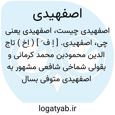 اصفهیدی. [ اِ ف َ ] ( اِخ ) تاج الدین محمودبن محمد کرمانی و بقولی شماخی شافعی مشهور به اصفهیدی متوفی بسال 807 هَ. ق. او راست:الایجاز در شرح المحرر قزوینی در فروع. شرح الفیه ابن مالک در نحو. ( از اسماءالمؤلفین ج 2 ستون 410 ).