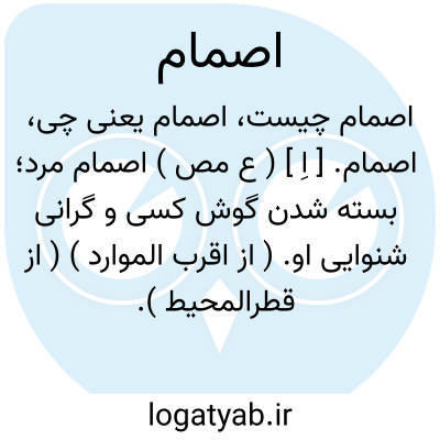 اصمام. [ اِ ] ( ع مص ) اصمام مرد؛ بسته شدن گوش کسی و گرانی شنوایی او. ( از اقرب الموارد ) ( از قطرالمحیط ). کر شدن. ( منتهی الارب ) ( آنندراج ) ( ناظم الاطباء ) ( تاج المصادر بیهقی ) ( زوزنی ). || کر کردن. ( ترجمان علامه جرجانی ص 13 ) ( منتهی الارب ) ( آنندراج ): اصمه اﷲ؛ خدا وی را کر کرد. ( از اقرب الموارد )( از قطر المحیط ) ( ناظم الاطباء ). لازم و متعدیست. || کر یافتن کسی را. ( از تاج المصادر بیهقی ) ( زوزنی ) ( منتهی الارب ) ( آنندراج ) ( ناظم الاطباء ) ( از اقرب الموارد ) ( از قطر المحیط ). || سربند ساختن ازبرای شیشه. ( منتهی الارب ) ( آنندراج ) ( ناظم الاطباء ). شیشه را صمام کردن. ( تاج المصادر بیهقی ) ( زوزنی ) ( از اقرب الموارد ) ( از قطر المحیط ). || اصمام دعای کسی؛ برخوردن آن به گروهی کر که سرزنش او را نمیشنوند. و در اساس آمده است: و اصمهم دعائی؛ اذا لم یجیبوک. ( از قطر المحیط ) ( از اقرب الموارد ).