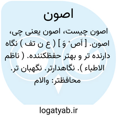 اصون. [ اَص ْ وَ ] ( ع ن تف ) نگاه دارنده تر و بهتر حفظکننده. ( ناظم الاطباء ). نگاهدارتر. نگهبان تر. محافظتر: والام علی ولدها اشفق و لها اصون. ( الجماهر بیرونی ص 107 ).
