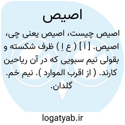 اصیص. [ اَ ] ( ع اِ ) ظرف شکسته و بقولی نیم سبویی که در آن ریاحین کارند. ( از اقرب الموارد ). نیم خم. گلدان. آوند شکسته یا آن نصف سبوست که در آن ریاحین کارند. ( منتهی الارب ). آوند شکسته و کوزه ای بشکل نصف سبو. ( ناظم الاطباء ). || لگن و تغار و یا کاسه بزرگ که در آن بول کنند. ( ناظم الاطباء ). ظرف شب. لگن. شاشدان. تقاره. ( از منتهی الارب ). باطیه که در آن شاشند. ( از اقرب الموارد ). || بنای محکم. ( از اقرب الموارد ). بنای استوار. ( منتهی الارب ) ( ناظم الاطباء ). || رعدة. ( اقرب الموارد ). لرزنده. ( ناظم الاطباء ). لرزه. ( منتهی الارب ). || بیم. ( منتهی الارب ) ( ناظم الاطباء ). زعر و انقباض. ( مهذب الاسماء ). || نوعی زنبر و گل کش دوگوشه. ( از منتهی الارب ). نوعی از آوند دوگوشه که در آن گل و لای کشند. ( ناظم الاطباء ).