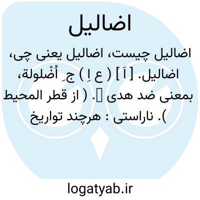 لغت نامه دهخدا اضالیل. [ اَ ] ( ع اِ ) ج ِ اُضْلولة، بمعنی ضد هدی ̍. ( از قطر المحیط ). ناراستی: هرچند تواریخ بعضی اقوام که کفار و عبدةالاصنام اند اباطیل خیالات و اضالیل حکایات نامعقول ایشان است. ( جامع التواریخ رشیدی ).