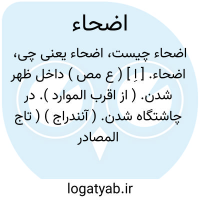 اضحاء. [ اِ ] ( ع مص ) داخل ظهر شدن. ( از اقرب الموارد ). در چاشتگاه شدن. ( آنندراج ) ( تاج المصادر بیهقی ). در ضحی درآمدن. ( منتهی الارب ) ( ناظم الاطباء ). || چیزی را ظاهر کردن. ( از اقرب الموارد ). هویدا نمودن چیزی را. ( ناظم الاطباء ) ( منتهی الارب ). ظاهر و هویدا کردن. ( آنندراج ). || کاری را در ضحی کردن. ( منتهی الارب ) ( از ناظم الاطباء ). چاشتگاه کردن کاری را. ( آنندراج ).چاشتگاه کردن. ( تاج المصادر بیهقی ). || اضحاء بصلاة نافله؛ گزاردن نماز نافله را در ظهر. || اضحاء از امر؛ دور شدن از آن. ( از اقرب الموارد ). || گردیدن. ( تاج المصادر بیهقی ).