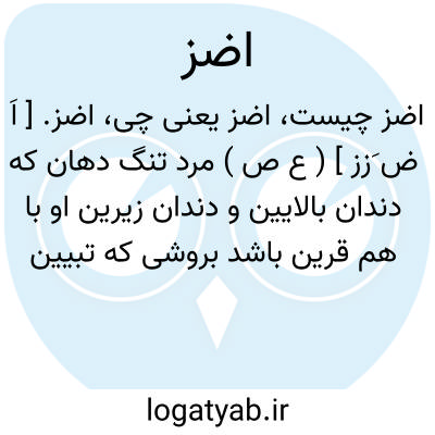 اضز. [ اَ ض َزز ] ( ع ص ) مرد تنگ دهان که دندان بالایین و دندان زیرین او با هم قرین باشد بروشی که تبیین کلام را نتواند، یا آنکه کام او بر هم چفسیده باشد و وقت حرف زدن نتواند آن واگرداند، یا آنکه مخرج کلام بر وی تنگ باشد و در تکلم ضاد استعانت کند. ( منتهی الارب ) ( از آنندراج ) ( از ناظم الاطباء ). مردتنگ کام که دندانهای زبرین و زیرین وی بهم برخورد و سخن وی آشکار نباشد، یا آنکه هنگام سخن گفتن بخلقت چانه وی از هم گشوده نشود، و یا کسی که مخرج سخن بر وی تنگ باشد و به ضاد یاری جوید، یعنی لکنت وار حرف ضاد را تکرار کند تا از آن بسخن گفتن درآید. ج، ضُزّ. || بدخوی. ( از اقرب الموارد ). مرد دشوارخو. ( منتهی الارب ) ( آنندراج ) ( ناظم الاطباء ). || خشمناک. ( از منتهی الارب ) ( آنندراج ) ( ناظم الاطباء ). غضبان. ( اقرب الموارد ). و ج ِ این دو معنی ضُزّاز است. || رکب اضزّ؛ بانه سخت و تنگ. ( منتهی الارب ) ( ناظم الاطباء ).