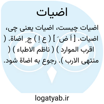 اضیات. [ اَ ض َ ] ( ع اِ ) ج ِ اضاة. ( اقرب الموارد ) ( ناظم الاطباء ) ( منتهی الارب ). رجوع به اضاة شود.