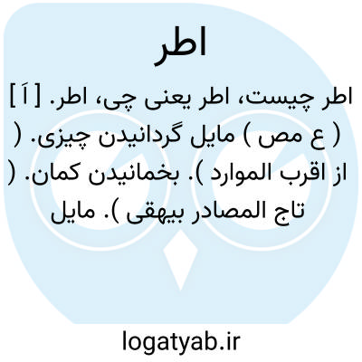 اطر. [ اَ ] ( ع مص ) مایل گردانیدن چیزی. ( از اقرب الموارد ). بخمانیدن کمان. ( تاج المصادر بیهقی ). مایل گردانیدن و خم دادن کمان و جز آن. ( ناظم الاطباء ). مایل گردانیدن چیزی و خم دادن کمان. ( منتهی الارب ). || پی پیچیدن بر سوفار تیر. ( منتهی الارب ) ( ناظم الاطباء ). پی بر سوفار تیر بپیچیدن. ( تاج المصادر بیهقی ). || اِطار ساختن برای خانه. || ( اِ ) خم و کجی کمان و ابرو. ( ناظم الاطباء ) ( از منتهی الارب ). تسمیه به مصدر است. ( ناظم الاطباء ).