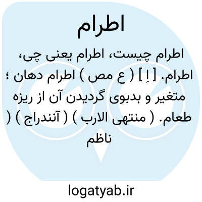 اطرام. [ اِ ] ( ع مص ) اطرام دهان؛ متغیر و بدبوی گردیدن آن از ریزه طعام. ( منتهی الارب ) ( آنندراج ) ( ناظم الاطباء ). تغییر کردن مزه و بوی دهان. و در قاموس اِطْرِمام بدین معنی آمده است. ( از اقرب الموارد ). و رجوع به اِطّرام شود. || کبود گردیدن دندانها. ( منتهی الارب ) ( آنندراج ) ( ناظم الاطباء ). سبز شدن دندان. ( تاج المصادر بیهقی ). دچار طُرامه شدن دندان، و طُرامه بمعنی سبزی روی دندان و بقیه طعام میان دندانهاست. ( از اقرب الموارد ).