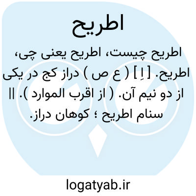 اطریح. [ اِ ] ( ع ص ) دراز کج در یکی از دو نیم آن. ( از اقرب الموارد ). || سنام اطریح؛ کوهان دراز. ( ناظم الاطباء ) ( منتهی الارب ). کوهان دراز. ( مهذب الاسماء ) ( آنندراج ).
