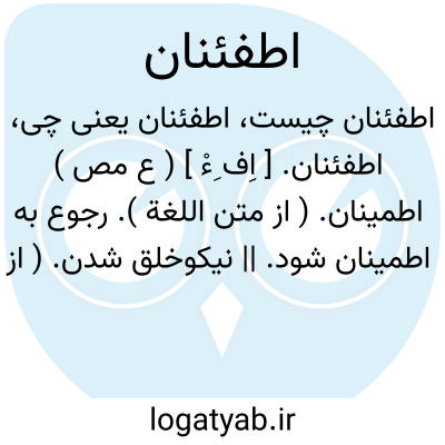 اطفئنان. [ اِف ِءْ ] ( ع مص ) اطمینان. ( از متن اللغة ). رجوع به اطمینان شود. || نیکوخلق شدن. ( از متن اللغة ).نیکو شدن خوی کسی. || نرمی کردن. || آرام گزیدن. ( از منتهی الارب ) ( ناظم الاطباء ).