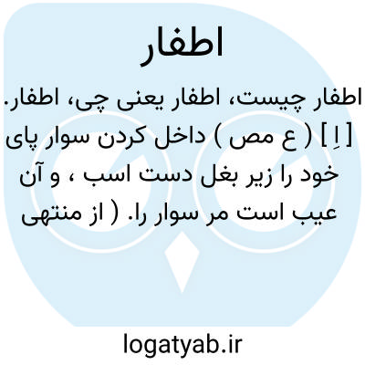 اطفار. [ اِطْ طِ ] ( ع مص ) فروبردن و درآویختن ناخن در چیزی، یا اِظِّفار است. ( از متن اللغة ). رجوع به اِظِّفار شود. || داخل کردن سوار پای خود را در زیر بغل دست اسب، و این عیب سوار است. ( آنندراج ) ( ناظم الاطباء ).