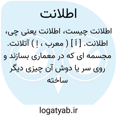 اطلانت. [ اَ ] ( معرب، اِ ) آتلانت. مجسمه ای که در معماری بسازند و روی سر یا دوش آن چیزی دیگر ساخته باشند. آدمک. مجسمه. رجوع به آدمک و مجسمه شود.