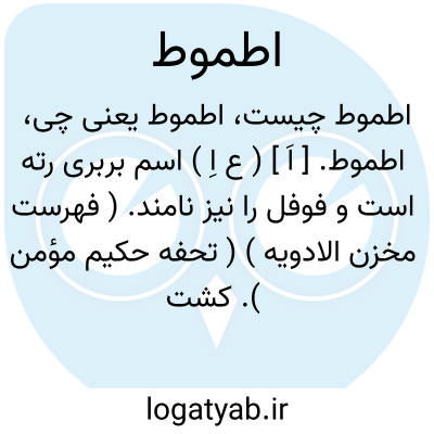 اطموط. [ اَ ] ( ع اِ ) اسم بربری رته است و فوفل را نیز نامند. ( فهرست مخزن الادویه ) ( تحفه حکیم مؤمن ). کشت بر کشت را گویند. ( تحفه حکیم مؤمن ) ( قرابادین )( قانون ابوعلی چ تهران ص 14 ). بمعنی اطماط است که بندق هندی باشد. ( برهان ) ( از آنندراج ) ( هفت قلزم ). رته یعنی بندق هندی و بر فوفل نیز اطلاق شود. ( از تذکره داود ضریر انطاکی ). لفظ مذکور معرب از زبان بربری است. ( فرهنگ نظام ). و در ترجمه صیدنه آمده است: رازی گوید او را اطماط گویند و بعضی گویند او دارویی است که منبت او روم است و بعضی گفته اند باقلای هندی است وبر وی نقطه های سیاه باشد و جرم او سخت باشد شبیه به سنگی که در رومی او را اکتکمت گویند و هم او گوید داروی هندی است و قوت او چون قوت بوزیدان است و دیگری گوید: گرم است در دوم و تر است در اول و قوت او بقوت بوزیدان ماند و در بهق سیاه استعمال کنند و قوه باه را زیاده کند. ( از ترجمه صیدنه ). و در اختیارات بدیعی آمده است: صاحب جامع گوید: اطموط و اطماط و اطبوط هر سه بندق هندی است که آن را رته خوانند و صاحب منهاج گوید: دوایی هندی است بقوت بوزیدان و همو گوید که: [ برخی ] گویند اکتکمت است و این سهو است و خطا. و صاحب جامع گوید: بعضی گویند فوفل است. و همو گوید که خطا است و مؤلف گوید: آنچه محقق است نوعی از باقلای هندی است. سخت بود و نقطه های سیاه بر وی و بصلبی شبیه بود به بندق هندی... ( از اختیارات بدیعی ).