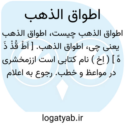 اطواق الذهب. [ اَطْ قُذْ ذَ هََ ] ( اِخ ) نام کتابی است اززمخشری در مواعظ و خطب. رجوع به اعلام المنجد شود.