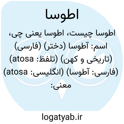 معنی: آتوسا، نام دختر کورش کبیر، نام همسر داریوش هخامنشی، این نام در تورات به عنوان