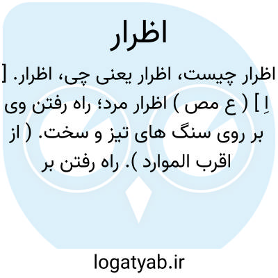 اظرار. [ اِ ] ( ع مص ) اظرار مرد؛ راه رفتن وی بر روی سنگ های تیز و سخت. ( از اقرب الموارد ). راه رفتن بر سنگ های تیز و سخت. ( از متن اللغة ). رفتن بر سنگ. ( منتهی الارب ) ( ناظم الاطباء ). رفتن بر سنگهای تیز. ( تاج المصادر بیهقی ). || اظرار رونده؛ افتادن وی در سرزمین پر از سنگ تیز و سخت. ( از اقرب الموارد ) ( از متن اللغة ). || اظرار زمین؛ فزونی یافتن سنگهای تیز و گرد آن. ( از اقرب الموارد ) ( از متن اللغة ).