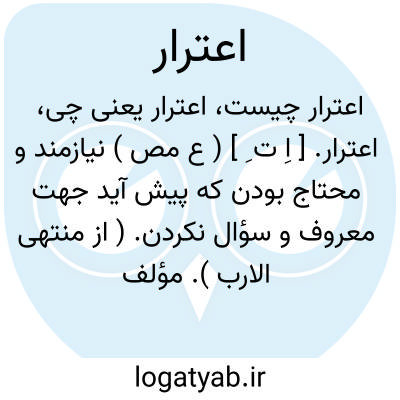 اعترار. [ اِ ت ِ ] ( ع مص ) نیازمند و محتاج بودن که پیش آید جهت معروف و سؤال نکردن. ( از منتهی الارب ). مؤلف نشوءاللغة آرد: المعتر؛فقیری که معترض باشد جهت معروف بی آنکه سؤال کند. ( از نشوءاللغه ص 61 ) ( از متن اللغة ). معترض بودن امر معروف را بدون سؤال کردن. ( از اقرب الموارد ). تعرض کردن در سؤال. ( تاج المصادر بیهقی ). تعرض کردن. ( المصادر زوزنی ). نیازمند گردیدن. ( ناظم الاطباء ). || بی سؤال بخشیدن. ( ناظم الاطباء ) ( یادداشت بخط مؤلف ). || دیدن و ملاقات کردن. ( از متن اللغة ). || پیش آمدن. ( یادداشت بخط مؤلف ).