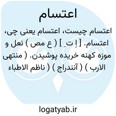 اعتسام. [ اِ ت ِ ] ( ع مص ) نعل و موزه کهنه خریده پوشیدن. ( منتهی الارب ) ( آنندراج ) ( ناظم الاطباء ). کفش و موزه کهنه گرفتن آنگاه پوشیدن. ( از اقرب الموارد ). || بچه آوردن گوسفند. ( از منتهی الارب ) ( از اقرب الموارد ) ( آنندراج ) ( ناظم الاطباء ). بچه آوردن گوسفند و انداختن راعی بچه هر یک را پیش مادرش. ( از اقرب الموارد ). || انداختن راعی بچه هر یک را پیش هر یک. ( منتهی الارب ) ( آنندراج ). انداختن راعی بچه هر یک را پیش مادرش. ( ناظم الاطباء ). || عطا کردن کسی را آنچه را که از تو میخواهد. ( از اقرب الموارد ).