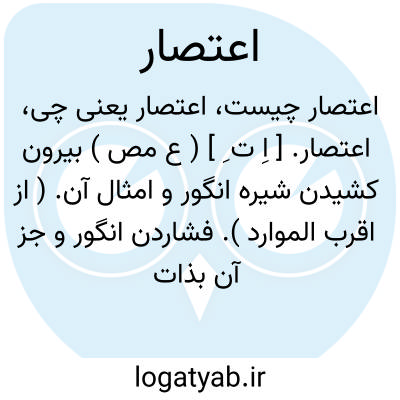اعتصار. [ اِ ت ِ ] ( ع مص ) بیرون کشیدن شیره انگور و امثال آن. ( از اقرب الموارد ). فشاردن انگور و جز آن بذات خود یا فشارده شدن برای او. ( منتهی الارب ) ( آنندراج ). فشرده شدن انگور و جز آن بخودی خود و یا فشار دادن کسی مر او را. ( ناظم الاطباء ). انگور افشردن. ( یادداشت مؤلف ). || فشاردن جامه و نظائر آن و گفته اند«عصر» بمعنی آن است که شخص خودش بمباشرت چیزی را بفشارد و «اعتصار» بمعنی فشارده شدن برای او باشد. ( ازاقرب الموارد ). فشردن. ( یادداشت مؤلف ). || عطا و نیکویی جستن. || قضای حاجت کردن. || بر سر طعام که در گلو ماند اندک اندک آب خوردن تا گواراند و فروبرد طعام را. ( منتهی الارب ) ( ناظم الاطباء ) ( آنندراج ). اندک اندک آب خوردن تا طعامی که در گلو مانده گوارا شود. و بدین معنی با حرف «باء» متعدی شود. ( از اقرب الموارد ) ( از لسان العرب ):