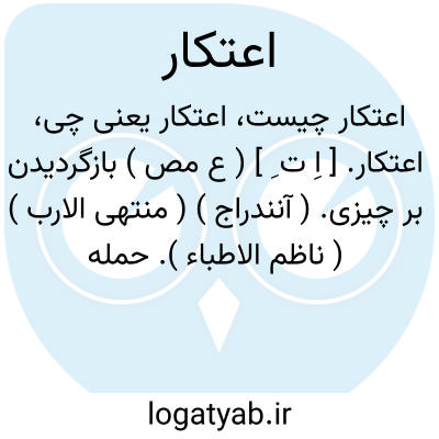 اعتکار. [ اِ ت ِ ] ( ع مص ) بازگردیدن بر چیزی. ( آنندراج ) ( منتهی الارب ) ( ناظم الاطباء ). حمله کردن و میل نمودن بر چیزی. ( از اقرب الموارد ). عَکر. عُکور. ( از اقرب الموارد ). مثل العکر. ( از المصادر زوزنی ). || با هم آمیختن قوم در حرب. ( منتهی الارب ) ( آنندراج ). با هم آمیختن قوم در جنگ. ( ناظم الاطباء ). با هم در هم آمیختن لشکریان در جنگ. ( از اقرب الموارد ). || بر همدیگر بازگردیدن لشکریان چندانکه شمار آن ممکن نباشد. ( منتهی الارب ) ( ناظم الاطباء ) ( آنندراج ). بازگشتن لشکریان بعضی بر بعضی چندانکه شماردن آن مقدور نباشد. ( از اقرب الموارد ). || نیک تاریک شدن شب وبر هم نشستن سیاهی آن و آمیختن تاریکی کأنه: «کر بعضه علی بعضه من بطوء انجلأه ». ( منتهی الارب ). نیک تاریک شدن شب و بر هم نشستن سیاهی آن. ( آنندراج ). نیک تاریک شدن شب و بر هم نشستن سیاهی آن و آمیختن تاریکی. ( ناظم الاطباء ). بهم آمیختن سیاهی مثل آن که بعضی بر بعضی حمله برده باشد بجهت کندی انجلاء آن. ( از اقرب الموارد ). || سخت سیاه شدن شب که موجب التباس گردد. ( از اقرب الموارد ). || سخت باریدن باران. ( منتهی الارب ) ( آنندراج ) ( ناظم الاطباء ). شدت یافتن باران. ( از اقرب الموارد ). بسیار شدن باران. ( تاج المصادر بیهقی ). || گرد برآوردن باد. ( ناظم الاطباء ) ( منتهی الارب ) ( آنندراج ). گردآلود کردن باد فضا را. ( از اقرب الموارد ). || پیوسته دیر بودن جوانی و پاییدن آن. ( ناظم الاطباء ) ( منتهی الارب ) ( آنندراج ). دوام یافتن و دیر پاییدن جوانی. ( از اقرب الموارد ). || پیه ناک گردیدن کوهان. ( منتهی الارب ) ( آنندراج ) ( ناظم الاطباء ). || با هم درآمیختن امور مختلف. || حمله نمودن و بازگشتن بعد از فرار. ( از اقرب الموارد ).