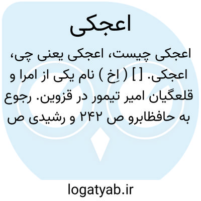 اعجکی. [ ] ( اِخ ) نام یکی از امرا و قلعگیان امیر تیمور در قزوین. رجوع به حافظابرو ص 242 و رشیدی ص 236، 242، 251، 252، 255 شود.