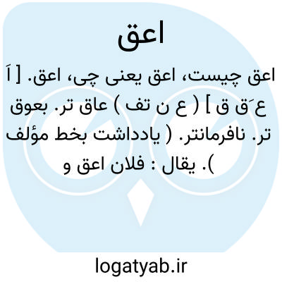 اعق. [ اَ ع َق ق ] ( ع ن تف ) عاق تر. بعوق تر. نافرمانتر. ( یادداشت بخط مؤلف ). یقال: فلان اعق و احوب. ( از تاج العروس ذیل حوب ): فانت طلاق و الطلاق عزیمة ثلاث و من یخرق اعق و اظلم.