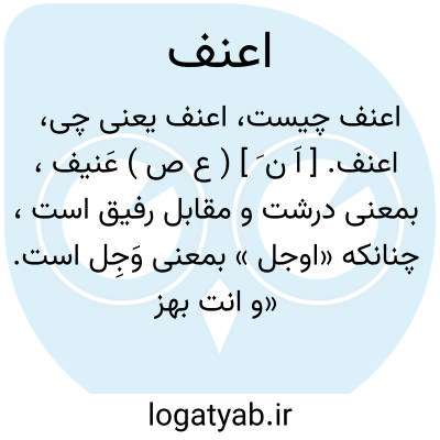اعنف. [ اَ ن َ ] ( ع ص ) عَنیف، بمعنی درشت و مقابل رفیق است، چنانکه «اوجل » بمعنی وَجِل است. «و انت بهز المشرفیة اعنف ». ( از ذیل اقرب الموارد ).