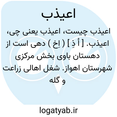 اعیذب. [ اُ ذِ ] ( اِخ ) دهی است از دهستان باوی بخش مرکزی شهرستان اهواز. شغل اهالی زراعت و گله داری است و در تابستان راه اتومبیل رو دارد. ( از فرهنگ جغرافیایی ایران ج 6 ).