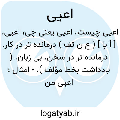 اعیی. [ اَ یا ] ( ع ن تف ) درمانده تر در کار. درمانده تر در سخن. بی زبان. ( یادداشت بخط مؤلف ).