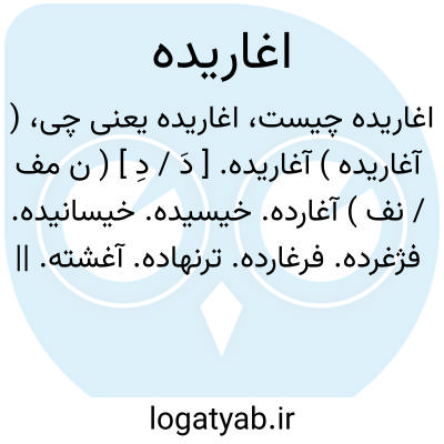 ( آغاریده ) آغاریده. [ دَ / دِ ] ( ن مف / نف ) آغارده. خیسیده. خیسانیده. فژغرده. فرغارده. ترنهاده. آغشته. || زهیده. تراویده. ترابیده. || آغالیده.