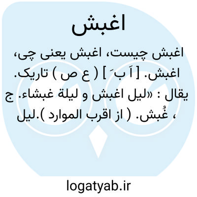 لغت نامه دهخدا اغبش. [ اَ ب َ ] ( ع ص ) تاریک. یقال: «لیل اغبش و لیلة غبشاء. ج، غُبش. ( از اقرب الموارد ).لیل اغبش؛ شب تاریک. ( منتهی الارب ) ( ناظم الاطباء ).