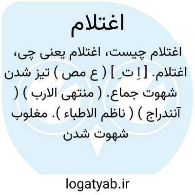 اغتلام. [ اِ ت ِ ] ( ع مص ) تیز شدن شهوت جماع. ( منتهی الارب ) ( آنندراج ) ( ناظم الاطباء ). مغلوب شهوت شدن مرد: غلم الرجل و اغتلم؛ غلب شهوته. ( از اقرب الموارد ). || لواطت کردن ( مولد است ). ( منتهی الارب ) ( آنندراج ). لواط کردن ( از لغات مولده است ). ( ناظم الاطباء ). || شدت یافتن سورت شراب. لقول: «اذا اغتلمت علیکم هذه الاشربة فاقصعوا متونها بالماء». ( از اقرب الموارد ). || سخت شدن امواج دریا: اغتلم امواج البحر؛ اشتد. ( از اقرب الموارد ).