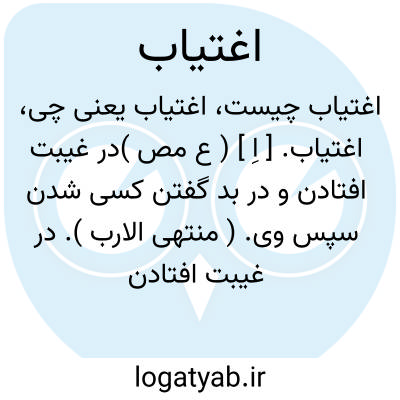 اغتیاب. [ اِ ] ( ع مص )در غیبت افتادن و در بد گفتن کسی شدن سپس وی. ( منتهی الارب ). در غیبت افتادن و در غیاب کسی بد گفتن. و غیبت کردن خواه از نیکوئی گویند یا از بدی آن. ( ناظم الاطباء ). عیب کسی گفتن و از بدیهایی که دوست ندارد گفته شود یاد کردن هرچند درست باشد: اغتابه اغتیاباً؛عابه و ذکره بمایکره من العیوب و هو حق. ( از اقرب الموارد ). غیبت کردن یعنی از پس مردم بد گفتن. ( ترجمان القرآن ترتیب عادل بن علی ). غیبت کردن. ( تاج المصادر بیهقی ) ( المصادر زوزنی ). بد گفتن کسی را بعد از وی. در غیبت افتادن سپس کسی. ( آنندراج ). بدگویی در غیاب کسی. در پشت سر کسی بد گفتن. ( یادداشت بخط مؤلف ).