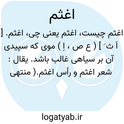 اغثم. [ اَ ث َ ] ( ع ص، اِ ) موی که سپیدی آن بر سیاهی غالب باشد. یقال: شعر اغثم و رأس اغثم.( منتهی الارب ) ( آنندراج ) ( ناظم الاطباء ). مویی که سپیدی آن بیشتر از سیاهی آن باشد. ( از اقرب الموارد ).